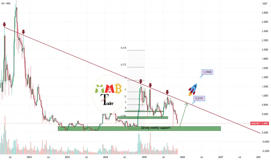 The trendline rejected price in August 2025 when ADA briefly peaked near $1.02.MMB Trader noted that a deeper decline toward weekly support at $0.33 had been a possibility.